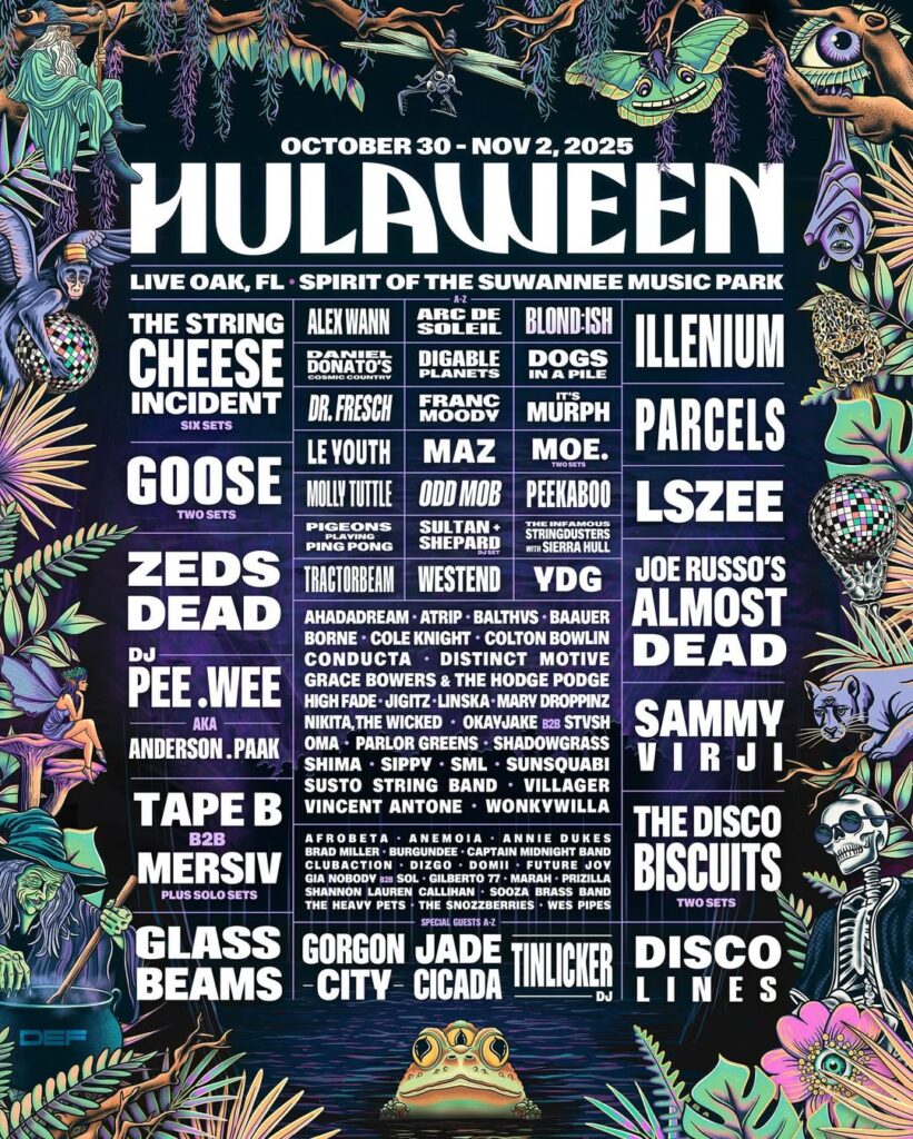 Get ready to answer the call of the woods, the legendary four-night escape at Hulaween (October 30–November 2, 2025) at the gorgeous Spirit of the Suwannee Music Park is shaping up to be a true celebration of music, community and magic. This year, the lineup is stacked, and the experience beyond the stage is just as unforgettable.